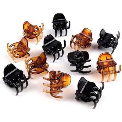 Klasické a velmi oblíbené skřipce do vlasů. V mixu naleznete plastové skřipce černé a medové barvy. Mají pevný stisk, ve vlasech budou dobře držet. Nabalené jsou po barevných dvojicích. V balení se nalézá 12 kusů. Rozměry: 20 x 20 mm (šířka x délka).Složení: plast kov