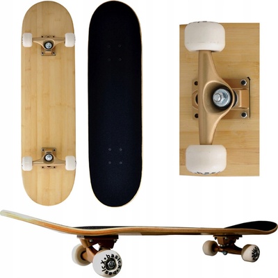 Profesionální bambusová deska (BXK8729) - Klasická a pevná, profesionální profilovaná dřevěná skateboardka s bílými koly a masivními matnými trucky typu seagull v barvě...