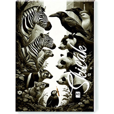 Školní skicák ve velikosti A3 s vícebarevnou titulní stranou, lepené listy, gramáž 190 g/m2.