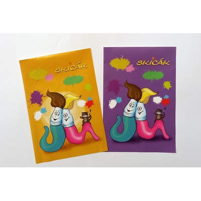 Školní skicák ve velikosti A4 s vícebarevnou titulní stranou, lepené listy, gramáž 190 g/m2.