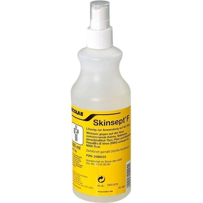 Skinsept F Bezbarvá alkoholová dezinfekce rukou kůže před injekcemi a pro hygienickou a chirurgickou dezinfekci rukou v rozprašovači. Oblasti použití: - dezinfekce kůže před vpichem (zavádění kanyl, krevní odběry, punkce) - dezinfekce kůže ve všech typech...