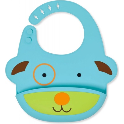 Silikonový bryndák Skip Hop z kolekce Zoo ve tvaru zvířátka. Bryndák zachytí padající jídlo od nezbedných jedlíků. \nVlastnosti:\n\n\npružný a praktický silikon se snadno udržuje, skládá i čistí\n\n\