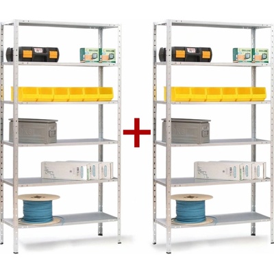 - šroubované kovové regály vhodné pro menší sklady, garáže, apod. - šest polic s nosností polic 75 kg (hloubka polic 500 mm) - police jsou výškově nastavitelné - výška...