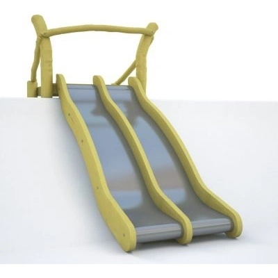 Zábavná dvoudráhová svahová skluzavka z nerezu 2,8 m s akátovou plošinou, která zabaví děti na dlouhou chvíli, po šplhání do svahu následuje rychlý a bezpečný sjezd ze svahu...