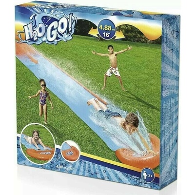 Dvojitý skluz H2O GO!s cílovou čárou se zabudovanými nafukovacími kužely a dalšími 4 nafukovacími koly pro pořádání závodů je další nabídkou společnosti Bestway pro letošní...