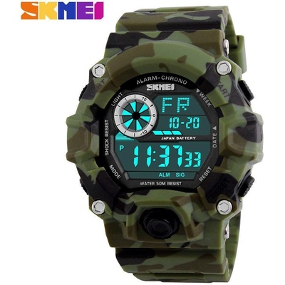 Digitální hodinky v designu maskáč MILITARY. Digitální pánské hodinky značky Skmei, ocení všichni sportovci! Podsvícený displej vám usnadní zkontrolovat čas i za tmy. Hodinky jsou vodotěsné až do 50 metrů.