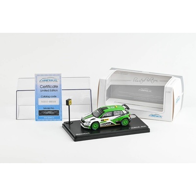 Model Škoda Fabia R5 (1:43), Jan KOPECKÝ #1 Rally Bohemia 2016 Pozn.: Model je přišrubován na podstavci. Sběratelský model - není vhodný pro děti mladší 14 let. Balení: plastový box s papírovým přebalem. Měřítko: 1:43 Výrobce: ABREX