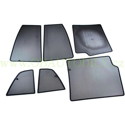 Sada - 5-ti dílů. Clony stíní zevnitř celou plochu oken. Jednoduchá montáž/demontáž nasazením zevnitř vozu. Clony jsou vyrobeny z černé tkaniny a mají ocelový pružný rámeček. Obsah balení: 1 pár slunečních clon oken zadních dveří 1 pár slunečních clon oken...