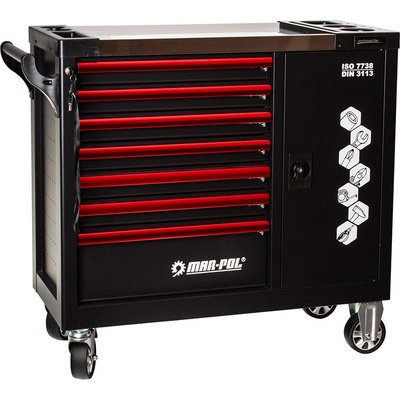 Dílenský vozík na nářadí, 7 zásuvek a skříňka - MAR-POL Dílenský vozík vyniká svou mobilitou díky kvalitním kolečkům, které umožňují snadný přesun po dílně. Robustní konstrukce...