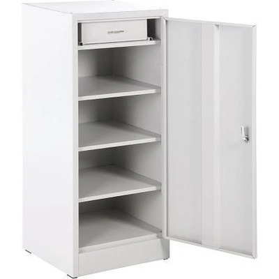 Vyrobeno z oceli. Skříňky se vyznačují malými rozměry, svařovanou konstrukcí a vysokou odolností. Jednobodové zamykání dveří uprostřed s cylindrickým zámkem. Police jsou výškově...