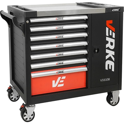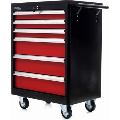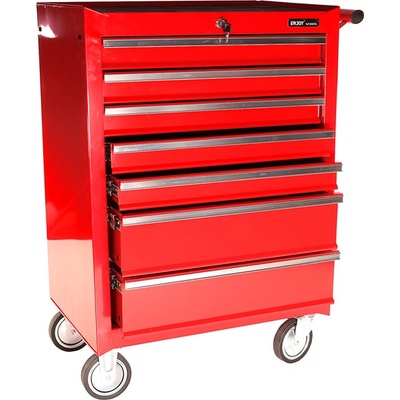 Červený kovový dílenský vozík se 7 šuplíky a skříňkou. Vozík je vhodný k výbavě nářadím nezbytným pro práci v dílně nebo servisu. Vozík se skládá ze 7 zásuvek,...