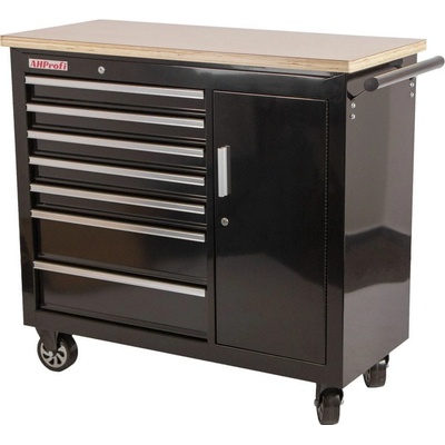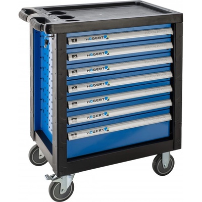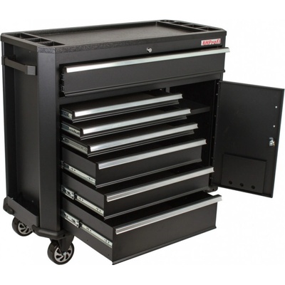 Černý kovový dílenský vozík se 7 šuplíky a skříňkou. Vozík je vhodný na nářadí nezbytné pro práci v dílně nebo servisu. Vozík se skládá ze 7 zásuvek,...