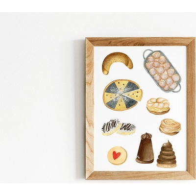 Plakát s autorskou ilustrací našich českých dobrot. Na archu najdete loupák, buchty, frgál, věneček, větrník, laskonky, linecké kolečko, indiánka a likérovou špičku. V kombinaci...