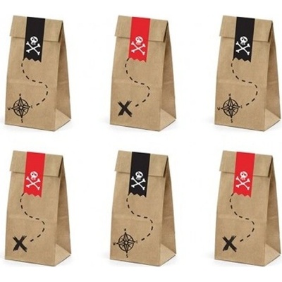 Papírové sáčky na sladkosti Piráti. Sada obsahuje 6 sáčků s potiskem a 6 samolepek, rozměry po složení cca 8 x 18 x 6 cm. Na žádné pirátské párty nesmí tyto sáčky se samými...