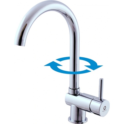 Vodovodní baterie dřezová stojánková s otočným ústím. tato baterie je vybavena keramickou kartuší o průměru 35 mm KA3502 v ústí SR0107 je namontovaný perlátor od firmy Neoperl...