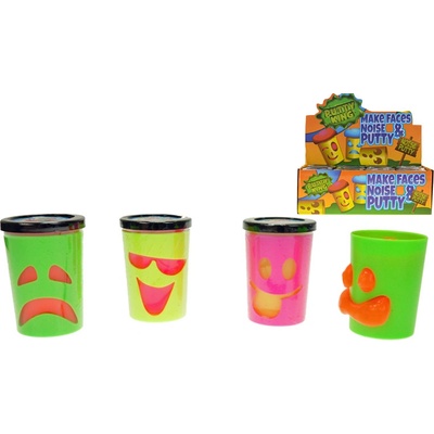 Sliz v kelímku s obličejem prdící. Kelímek můžete použít k legráckám se slizem. Zmáčkněte sliz v kelímku a proteče Vám otvory a navíc vydává vtipné zvuky.