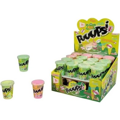 Slimy prdící kelímek, 80g. Žlutý, zelený nebo růžový. Displej 32 ks.