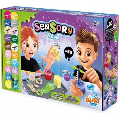 Senzorické slizy - sada různých slizů a jejich výroba BUKI France Velká sada senzorických slizů, kde každý jeden sliz je odlišný... jiná barva, jiný povrch, jiná lepivost, jiná pružnost atd. Sada má některé slizy již připravené v kelímcích a je možné si s nimi hrát a...