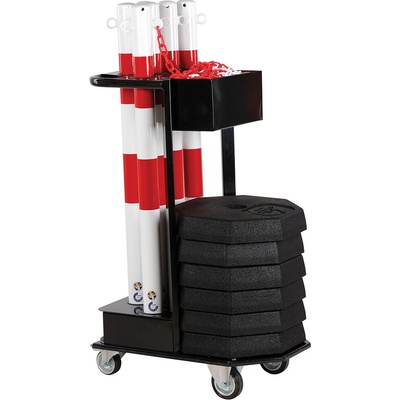 Transportní vozík se sloupky a řetězem, bílá / reflexní červená v tomto případě v barevném provedení bílá / reflexní červená. Vozík i sloupky jsou vyrobeny z oceli a gumové...