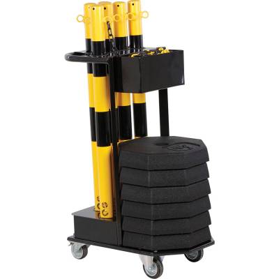 Transportní vozík se sloupky a řetězem, černá / žlutá v tomto případě v barevném provedení černá / žlutá. Vozík i sloupky jsou vyrobeny z oceli a gumové základny z kaučuku....