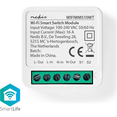 NEDIS Wi-Fi chytrý spínač pro světla/ spotřeba 3680 W/ připojení terminálu/ NEDIS Nedis WIFIWMS10WT Chytrý spínač umožňuje přidat vzdálené přepínání, programování a hlasové ovládání (v kombinaci s asistenty Google Assistant nebo Amazon Alexa) ke stávajícím světlům....