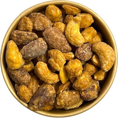 Mix ořechů v medu a soli Druh: Směs skořápkových plodů a luštěnin Složení: ARAŠÍDY 34%, cukr, KEŠU ořechy 17%, MANDLE 17%, glukóza, slunečnicový olej, emulgátor (E414, E322),...