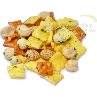 Japonská směs JUMBO Druh: Luštěniny Složení: ARAŠÍDY, PŠENIČNÁ mouka, kukuřičný škrob, cukr, kukuřičná mouka, SEZAMOVÉ semínko, bramborový škrob, maltodextrin, SÓJOVÁ omáčka...