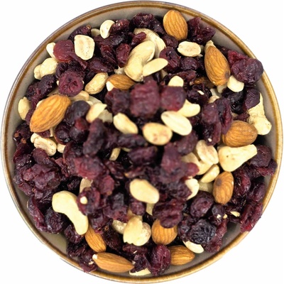 Lahodná kombinace brusinek, arašídů, rozinek, lískových oříšků, mandlí a ananasu vás okouzlí hravou chutí a pořádnou dávkou energie. Ideální svačinka do auta, kanceláře nebo na...