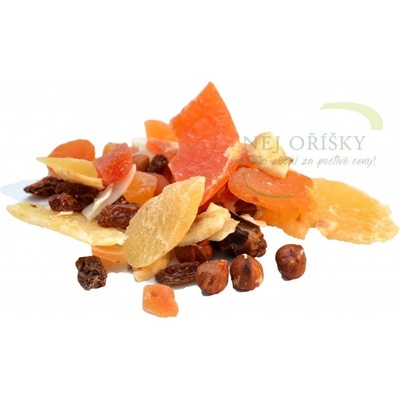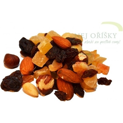 Složení: ananas, rozinky, papaya, lísková jádra, jádra mandlí, slunečnicový olej, cukr, konzervant : SO2, regulátor kyselosti: kyselina citrónová Alergeny : Skořápkové plody,...