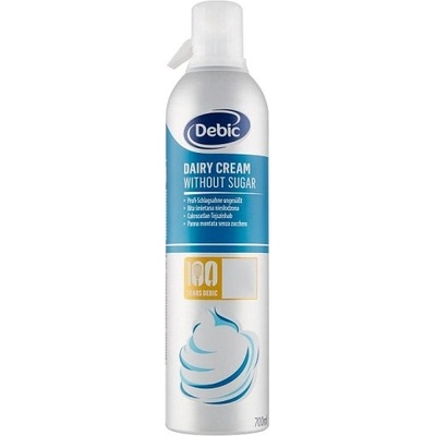 Profesionální smetanová šlehačka Debic 700 ml s obsahem tuku 26 %. Neslazená, UHT sterilizovaná, bez lepku. V tlakové plechovce. Debic Profi šlehačka 700 ml 26 % – neslazená...