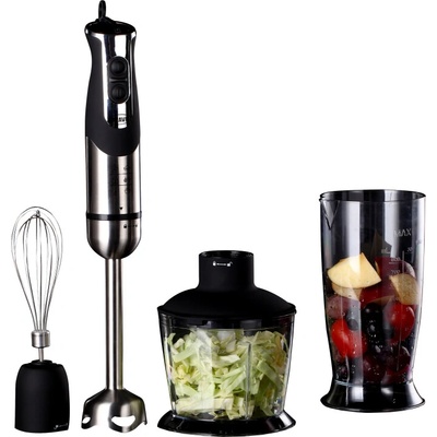 Ponorný mixér - plynulá regulace rychlosti mixování • silný 800W motor • nerezový rotační nůž se 4 čepelemi • elegantní i kvalitní nerezový design • praktické příslušenství (sekáček na zeleninu, šlehací metly, nádoba)