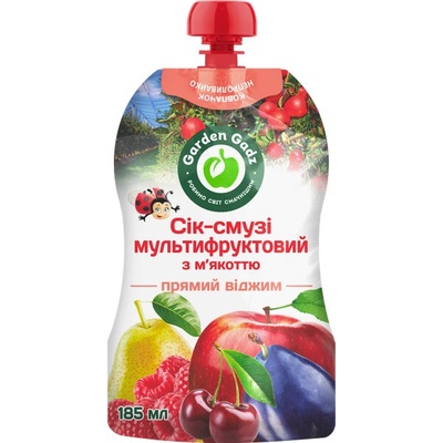 Multivitamínový džus-smoothie s dužinou 185ml Garden Gadz Přírodní multivitamínový džus-smoothie Garden Gadz – hustý nápoj ze 100 % ovocného pyré bez přidaného cukru, vody a...