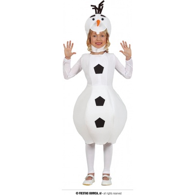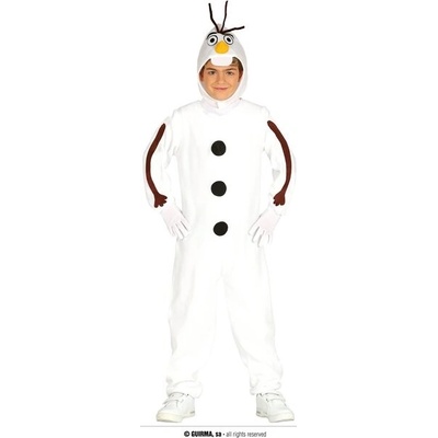 Kostým GURMA je unisex dětský kostým sněhuláka Olafa z oblíbené pohádky, určený pro děti ve věku 7 - 9 let na karnevaly, maškarní plesy, tematické párty nebo hru na pohádkové postavy. Komplet obsahuje bílou tuniku s potiskem a pokrývku hlavy ve tvaru Olafovy tváře....
