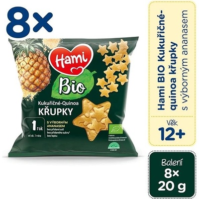 HAMI BIO kukuřičné-quinoa křupky s ananasem Nové Hami BIO Kukuřičné-Quinoa křupky s výborným ananasem jsou vhodné pro dětičky od ukončeného 1 roku věku. Svým hravým tvarem,...