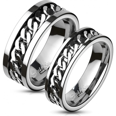 Ocelové prsteny s rotačním středem v podobě dekorativního řetězu.Objevte kouzlo elegantních snubních prstenů z chirurgické oceli, které spojují robustnost s moderním designem....