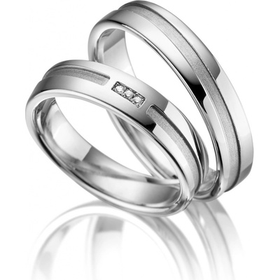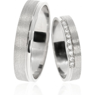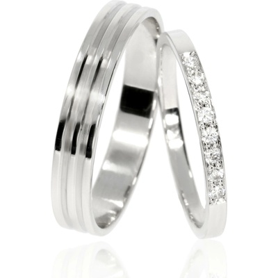 Snubní prstýnky z bílého zlata. Snubní prsteny jsou rovného tvaru, vyrobeny jsou z bílého zlata. Povrchová úprava těchto snubních prstýnků je v lesklém provedení s proužkem...