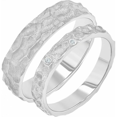 neopakovatelná dvojice snubních prstenů s originální povrchovou úpravou. strukturovaný povrch obrouček vzniká tepáním a škrábáním, což dělá z každého kousku skutečný originál....