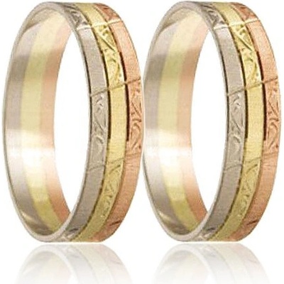 Snubní prsteny ze žlutého, bílého a červeného zlata ryzosti 585/1000-14karátů, zdobené rytinkou. Ceny prstenů jsou spočítány pro pár prstenů a to velikosti dámského 54 a...