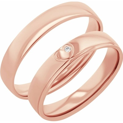 elegantní dvojice snubních prstenů z recyklovaného zlata ve žluté, růžové nebo bílé variantě. dámský model navíc zdobí gravír srdce a drobný přírodní diamant. komfortní typ...