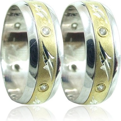 Snubní prstýnky z bílého a žlutého zlata zdobené jemnou rytinkou. Snubní prsteny jsou anglického (zaobleného) tvaru, vyrobeny jsou v kombinaci žlutého a bílého zlata. Středová...