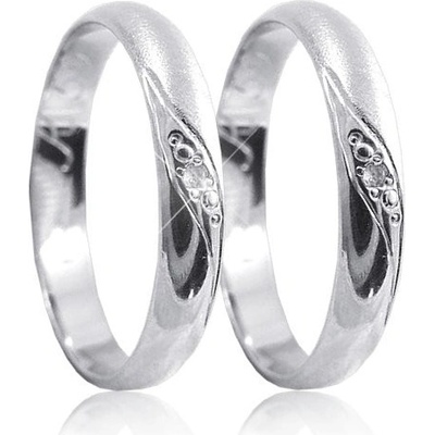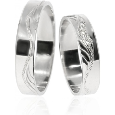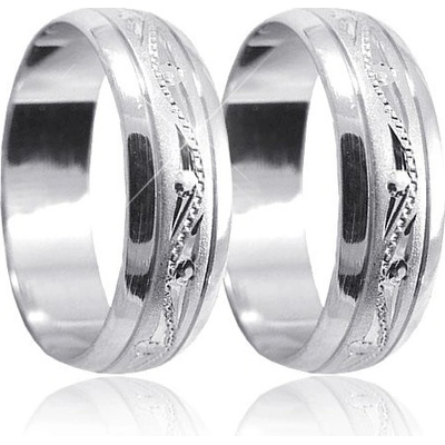 Snubní prstýnky z bílého zlata zdobené jemnou rytinkou. Snubní prsteny jsou anglického (zaobleného) tvaru, vyrobeny jsou z bílého zlata. Prsteny jsou zdobeny po celém svém...