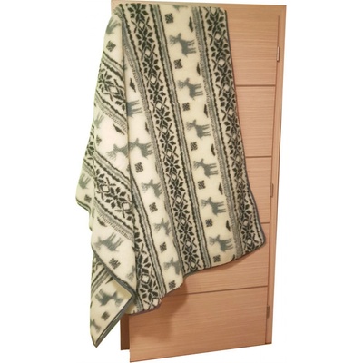 Oboustranná vlněná deka MERINO – Luxusní a léčebné vlastnosti Oboustranná vlněná deka MERINO – s norským vzorem sobů na jedné straně a přírodní barvou na druhé, Deka je ideální...