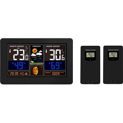 Meteostanice s velkým barevným podsvíceným LCD displejem. Měření vnitřní teploty: -9,9 °C až +50 °C. Měření venkovní teploty: -40 °C až +70 °C. Měření vnitřní a vnější vlhkosti: 20% - 95%. Měření relativního/absolutního atmosférického tlaku: 600 hPa/mb - 1100...