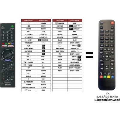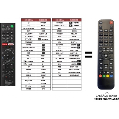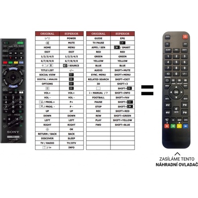 Sony náhradní dálkový ovladač. NEPOTŘEBUJE KÓDY.