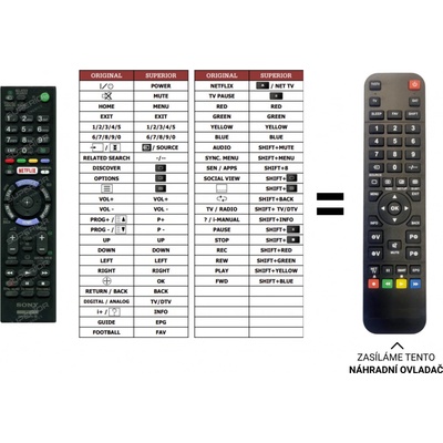 Originální dálkový ovladač SONY RMT-TX100D byl nahrazen ovladačem RMT-TX100E, který je stejný, pouze nemá tlačítko NETFLIX. (zobrazen vlevo!). Funkci NETFLIX je však možno...