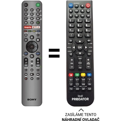 SONY náhradní dálkový ovladač. BEZ HLASOVÝCH FUNKCÍ Nahrazuje rmf-tx500e, rmf-tx600e. Například pro KD49XH9505BU, KD-43XH8505BU, KD43XH9106, KD-49XH8505BU, KD-49XH9096,...