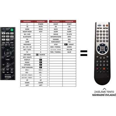 Jedná se o originální dálkový ovladač přímo od výrobce Sony. Je zárukou 100% kompatibility a zachování všech funkcí, jako u ovladače, který byl dodán s vaším zařízením. Ovladač...
