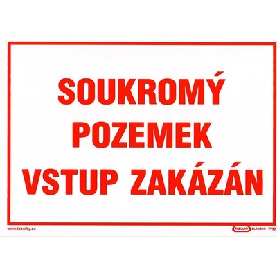 Tabulka Soukromý pozemek, vstup zakázán Plastová tabulka s textem (bez symbolu). rozměry: 210 x 297 mm (formát A4). Provedení se může lišit. Pokud potřebujete tabulku s...
