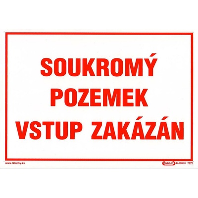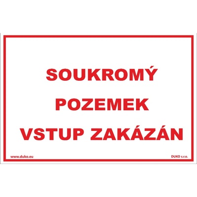 Tabulky, značky a samolepky "Soukromý pozemek" jsou tištěny na vysoce kvalitním materiálu, barvami s vysokou odolností proti otěru a UV záření. Provedení je plně v souladu s...