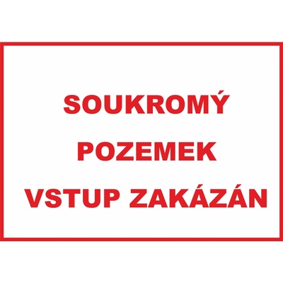 Praktická výstražná tabulka s nápisem Soukromý pozemek – vstup zakázán ve formátu A4 (210 × 297 mm) z odolného plastového materiálu. Ideální pro jasné označení soukromých...
